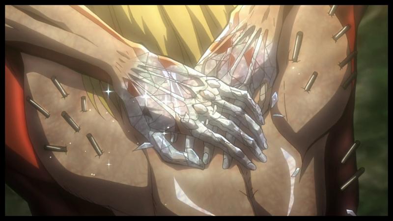 3) break through hardened titan skin (i think he hardened his hands to block?) and then wht's ability is constructing things out of hardening.